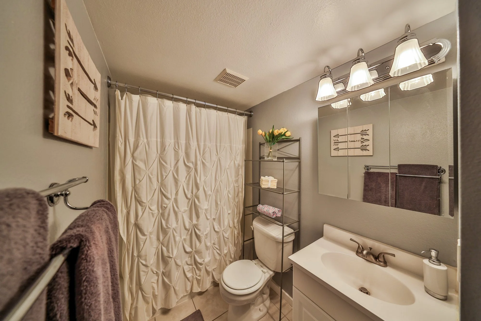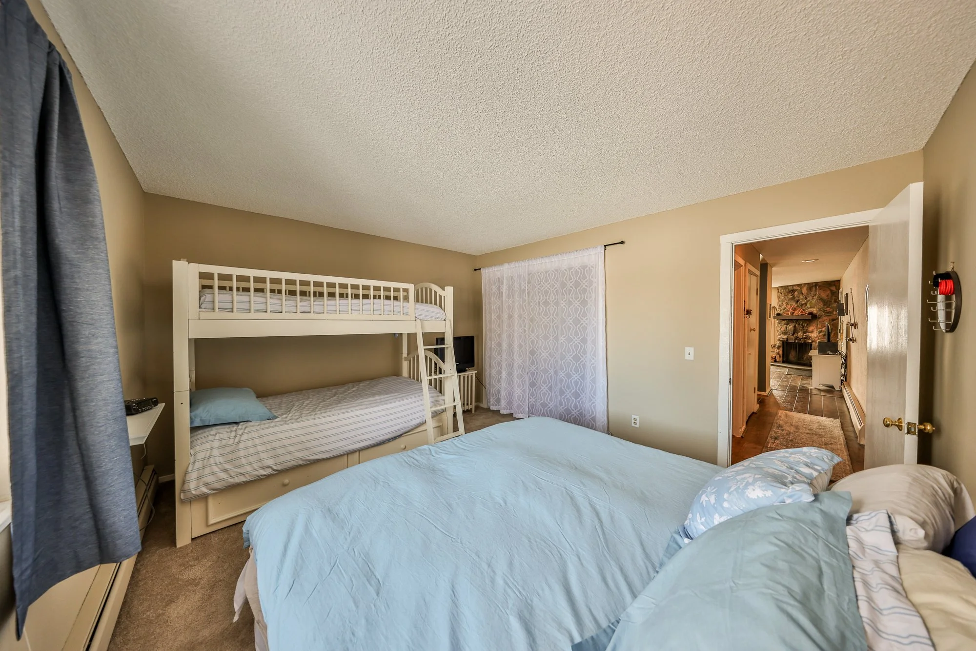 The kitchen is well-equipped with stainless appliances, large counter space, and custom-painted cabinetry for a fresh, modern feel. The oversized bedroom comfortably sleeps a crowd, with a king bed plus twin bunk beds, perfect for family and friends! Large windows let in natural light, and there’s plenty of storage, including under the bunks. The full bath features tile flooring, an updated vanity, and extra shelving.